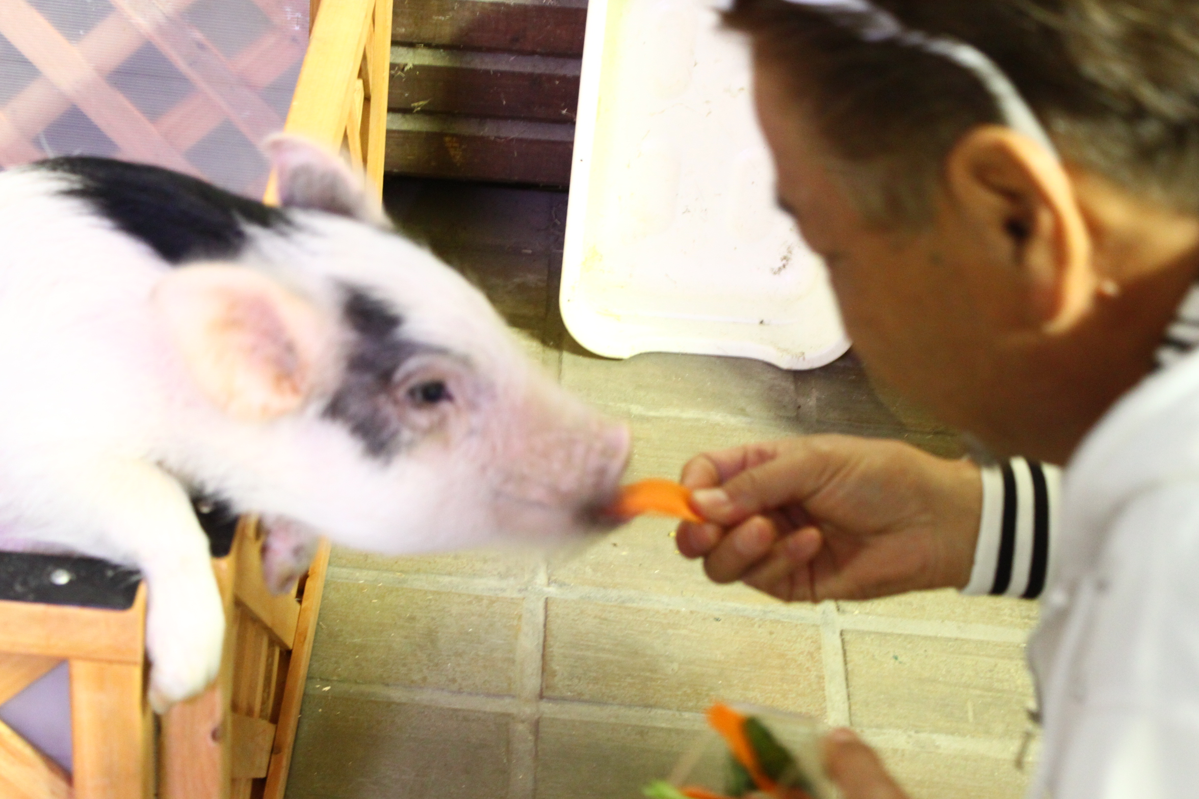 最後にミニブタに餌をあげる旦那さんw